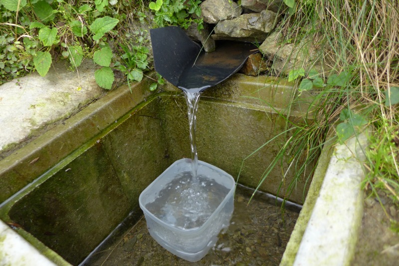 そして、何度通っても飽きのこない酉谷山避難小屋に到着する。水場からは水が程よく流れている。小屋に人の姿はない。小屋の3足のサンダルは前回の出発時にFさんによってそろえられたままの姿だ。さっそくいつもの行事、ビールと日本酒の冷却作業を行いつつ、水場を確認する。画像のとおり細かい土砂がゴムシートの上に溜まっている。水を差し込みドバっと中からの強い流れを作ると、微小生物の屍骸も流れ出てくる。そんなこともあろうかと、濾過紙(コーヒーフィルター)とそれを支えるジョウロを持参した。(別に気にせず飲みましょう!)
