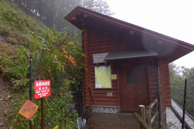 そぼ降る雨の芋ノ木ドッケ分岐で簡便な昼食を摂ったのち、白岩小屋に向かうと、今日初めての人と出会う。この天候だから人のでは少ないだろうとは思っていたが、太陽寺への分岐点であるお清平までに数人とすれ違っただけだった。