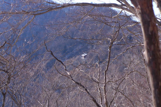 一杯水避難小屋手前の水場(枯れているor凍っている)を通過して間もなく一杯水避難小屋に到着するが、タイムリミットとした午後3時30分を2時間以上も残している。そこで大休止(30分)を取ることとして、昼食にする。間もなくヨコスズ尾根から登ってきたという単独の方が2人相次いで到着した。いずれも酉谷山避難小屋までとのことであったが、1人はここでリタイアとなった。先行した単独者の足跡を追うとその下に新しい足跡が残っていて、タワ尾根などから登ってくる人があったら(小屋の適正収容人数は5人程度だから)まずいかなと思いながら足を進める。ハナド岩で休憩中の先行者を横目に先に進むが、ふくらはぎやアキレス腱が悲鳴を上げてきたので懇ろにストレッチを施した上で進む。