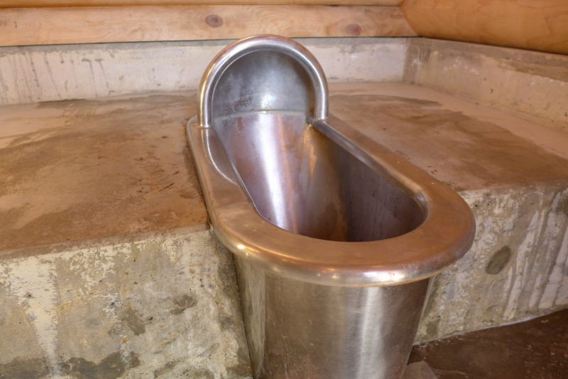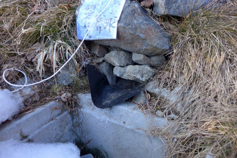 夜明け前の小屋内の温度はマイナス1℃、小屋の外はマイナス8℃であった。それほど寒い朝ではなく、よってマイナス15℃まで対応のシュラフではまったく寒さを感じることはなかった。というより暑いぐらいであった。大事な水場はどうかといえば、まったくと言っていいほど完璧に涸れていた。こんなことは、これまで一度も経験したことはなかった。コンクリート枡はすっかり乾いている。ということで、水の担ぎ上げは必須である。