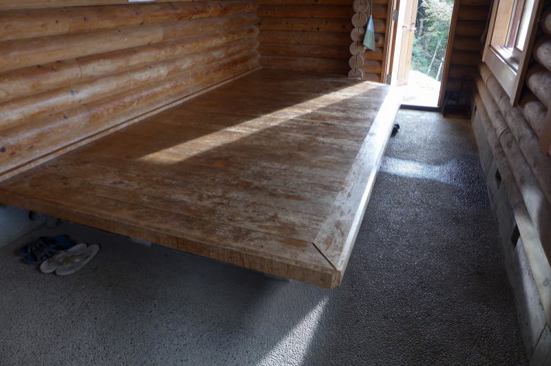 夜明け前、窓からは立ち込めたガスが見える。ヤマテンは、今日は午前中は晴れマークを出していたのに。夜が明けると少しずつ視界が開けてくる。のんびりしていい一日なので、ゆっくり起きてコーヒーを飲む。食後の時間は恒例の清掃タイム。板の間、土間、トイレ・・・、どこも懇ろにピカピカにする。あ〜さっぱり。
