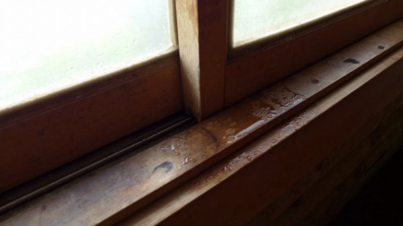 この雨で小屋の屋根から雨漏りがしている。天井を見ると板が腐っている。長い間雨漏りをしていたものと思われるが、雫となって分かるように滴り落ちなかったから気付かなかっただけのことだろう。