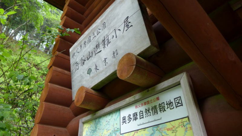 東日原の駐車場(有料:500円/1日)に車を停め、急な登山道を我慢に我慢を重ねて歩くこと2時間、目の前にぽっかりと一杯水避難小屋が浮かんだ。小休止ということで小屋に入り、コンビニ調達のいなりを頬張る。雨に濡れた顔を手ぬぐいで拭こうとすると、顔の近くで手ぬぐいに止まっていたクロスズメバチが目に入る。とっさに手ぬぐいを振り払うと、クロスズメバチは左手薬指にガツンと針を刺す。いててててててて〜、いてててててて〜とは言わなかったが、酷く痛かった。
