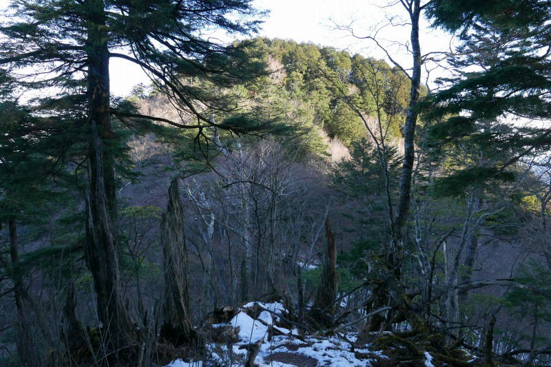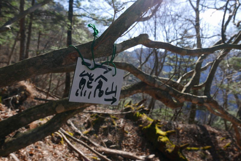 体が運動を欲しているからと林道のドン詰まりまでは快調に歩いたが、その先から始まる急登で即座に筋肉が「つらいよ〜」と泣いている。それもそうだろう。先週の矢岳〜酉谷山避難小屋の7時間のアップダウンが本当にきつかった。そうは言っても、今日は天気のいい土曜日。いつものようにツェルトは持ってきたが、銀マットをザックに入れるのを失念してしまった。万一小屋に入れないときは背中が寒いだろうなぁ。とにかく急ごう。