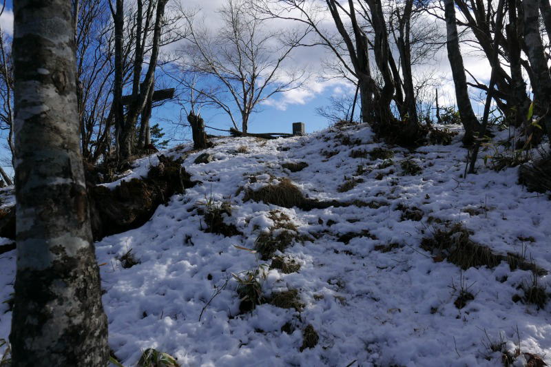 異次元の人たちが去って、年配者も起き出し早出して行った。外に寝た人もいつまでも寝ていられなかったのだろう。4人中3人は、夜が明けたときにはもういなかった。最後まで残ったのはこの小屋を掃除していきたいという人だった。この小屋が大好きで、どうしても掃除をして行きたい、任せてほしいというようなことだったので、小屋を後にする。長沢背稜の分岐から酉谷山に登りかけると、薄手のウールとの2枚重ねの手袋では手が冷たくて我慢できず、少しゆとりのある残雪期用の手袋に変えると血の巡りがよくなって温かくなった。