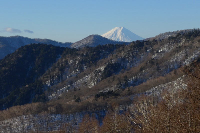 酉谷山避難小屋から タワ尾根と富士山