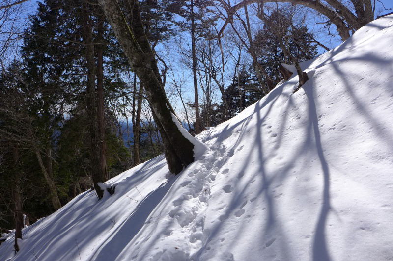 いつ来ても、いつの時期に歩いても長沢背稜の光景は、タワ尾根とともに素晴らしい。これほどの大樹・巨樹でなる自然林が残っていて人も少ない。数年前はツキノワグマの足跡がタワ尾根を中心に多かったが、今年その足跡を見たのは1日目のタワ尾根でのことで、それも1頭分だけであった。あとは小動物のものだけ。なお、鹿の足跡は感想の対象外!