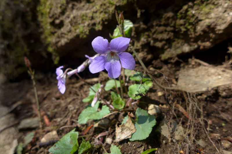 一石神社の脇から登る急な斜面にわずかにスミレが咲いている。最近の踏み跡が一人分ある。たぶん今日のものだろう。東日原の駐車場には先客の車が2台停められていた。今日は午後から寒気が南下してくると言うが、快晴無風で暑いことこの上ない。真夏の縦走スタイルで来たが汗が流れる。