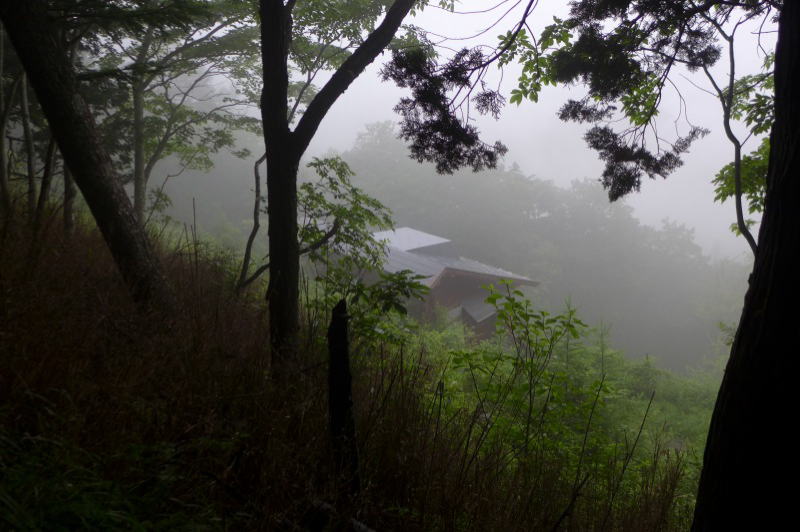 雨に煙る酉谷山避難小屋
