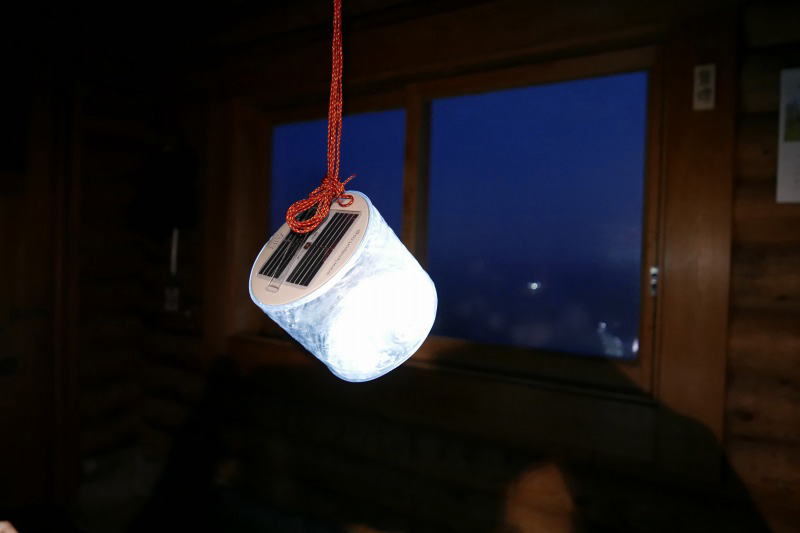 酉谷山避難小屋の夜を照らすソーラーランタン
