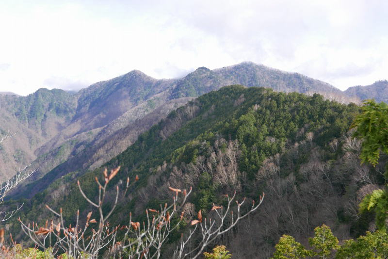 左から酉谷山、その左の手前の山が小黒、奥の左に坊主山