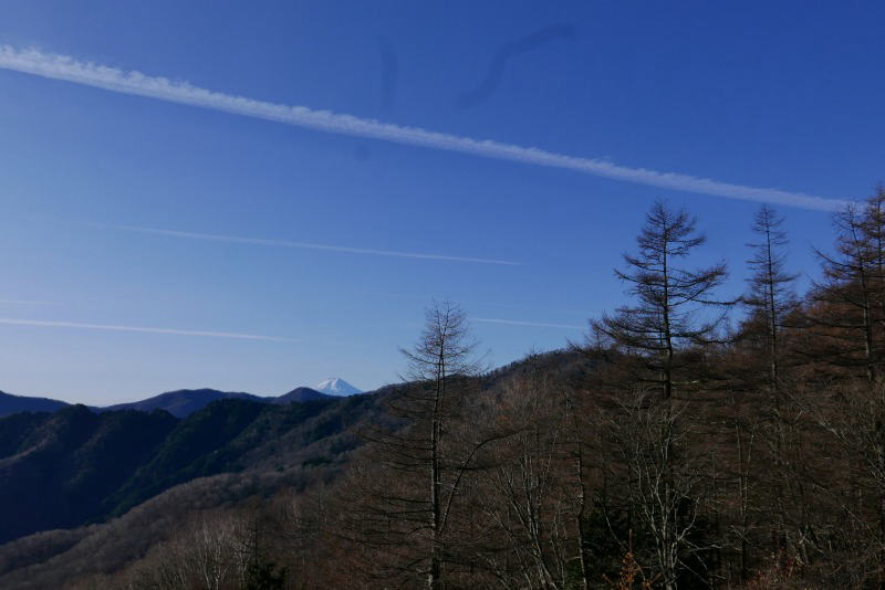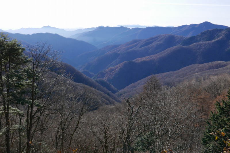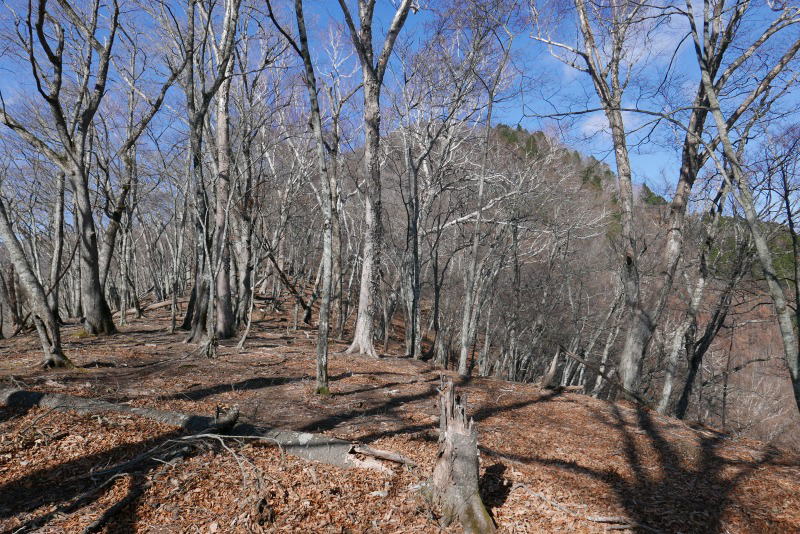 たっぷりある時間をゆっくり使い小屋もすっかりきれいになった。小屋にお別れする。小屋から長沢背稜への道を上がってタワ尾根へと向かう。長沢背稜から光り輝く相模湾を見ながら進む。