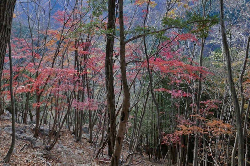 奥多摩の紅葉も最終盤とのことでしばらくぶりにタワ尾根を一石神社から登ることにした。車を東日原に停め、平日なので東日原から鍾乳洞まではバスに乗る。珍しく終点まで乗る人が多く、登山者に外国人観光客が目立った。
