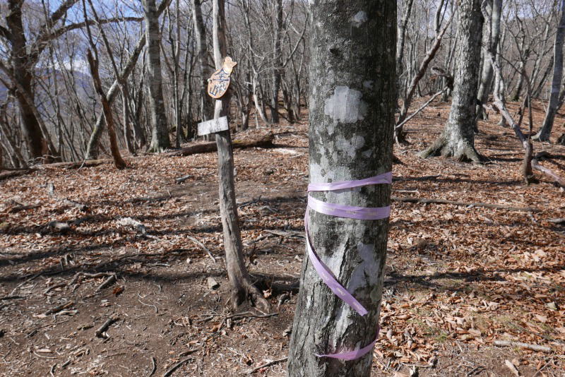 まだ小屋の水は採れるだろうと、担いだ水は1.5リットル+1.2リットル。しばらくぶりの一石神社裏の急登が体にこたえる。タワ尾根を歩いたという最近の記録を見ると、「テープを着けてきた」という悪い感じの記載があった。案の定ベタベタと「ビニールテープ」「荷造り用ビニール紐」「手芸用テープ」「菓子箱用テープ」が多く着けられている。
