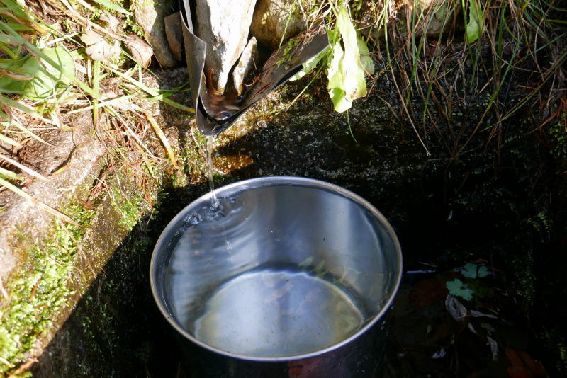 たまたま、この時期としては水場にはしっかりと流れがある。おいしい避難小屋の水でストレートコーヒーを淹れて一息つく。そのうちに酉谷山に登っていた4人組が戻ってきて、にぎやかさが増してくる。この4人組のリーダー格が板の間で板敷を使用せず分離式のシングルバーナーで料理を始めた。「あ゛〜」、板の間が焦げそう・・・。