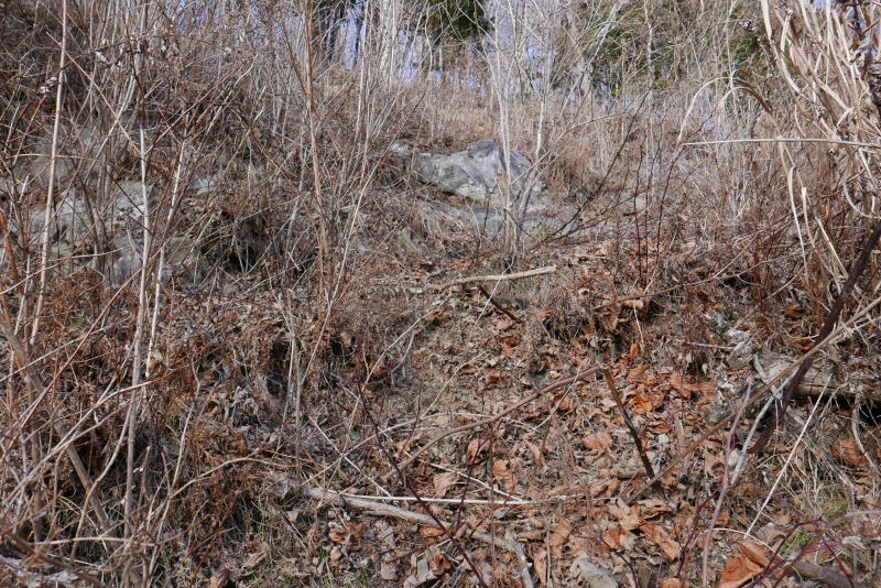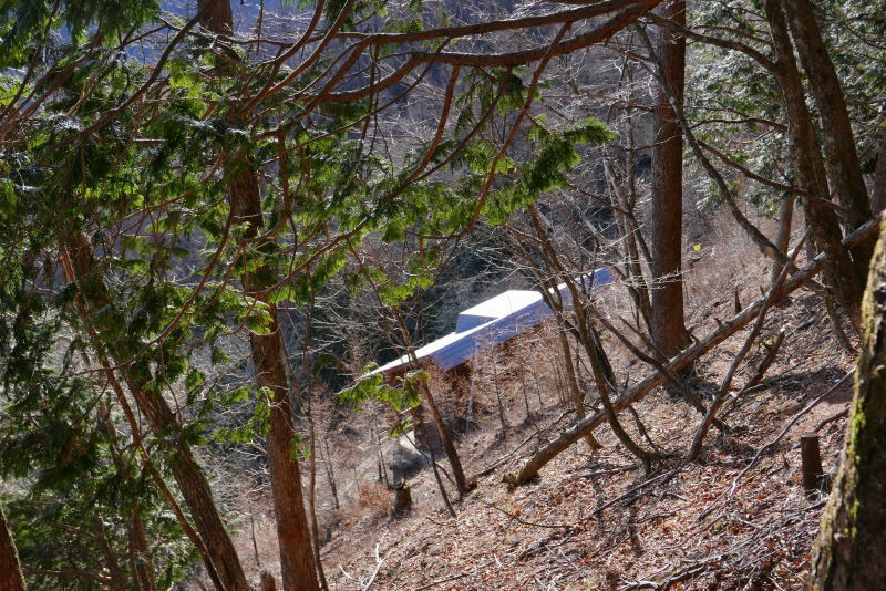 酉谷山避難小屋小屋横から斜面を上り下りした跡