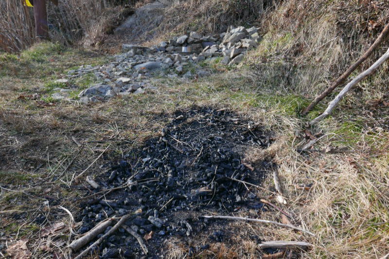 8日〜9日に酉谷山避難小屋を利用した方もいて、その人はたき火跡を見ている。その前の週の平日にでも愚行があったのだろう。薪となるものは小屋横から斜面を上り下りして採ったものと思われる。足跡が付いていた。トレッキングポール用としてでも使おうかと残しておいたであろう棒が2本、薪用の棒や枝も少なからず残されていた。