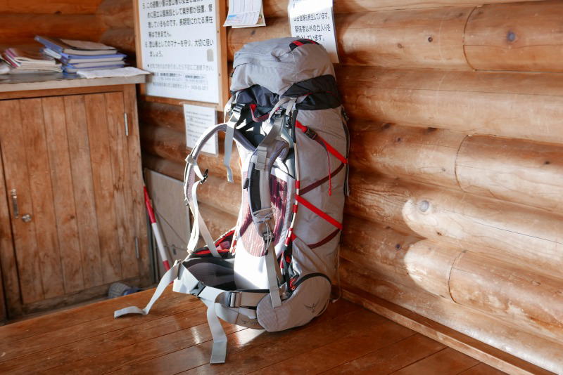 新しいザックは、ヒップベルトの両脇に少し大きめのポケットがあるほかは至ってシンプルです。軽量ながら各パーツがしっかりしているし、背負い心地は上級です。ただ、縦長でザック上部が少し振られる感じがしますが、アジャスティングをしっかりすれば問題はありません。買ってよかった〜!