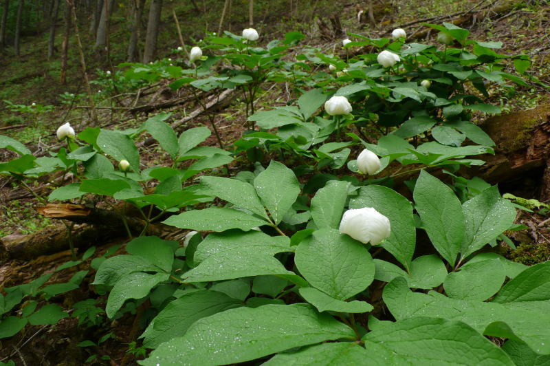 ヤマシャクヤクはごく一部がつい最近花を広げたようで、