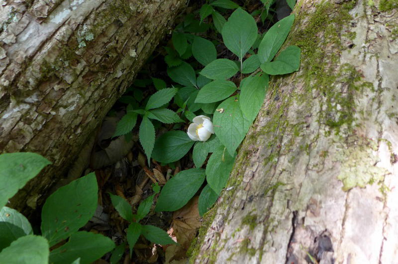 この山に咲くヤマシャクヤクの全体像は掴んでいない。今年はあの稜線に登ってこの尾根を下りながら探し歩こうなどとGPSに植生の存在が予想されるコースを落としてきたが、来る時期が遅れたことによるモチベーションの減衰は、道なき尾根を上り下りする緊張感も失ってしまった。