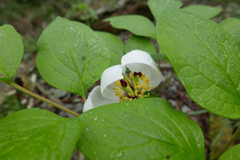 ヤマシャクヤクの咲くところを3か所巡った。誰の足跡もないひとりだけのヤマシャクヤクの地!ひとつひとつのヤマシャクヤクの花が愛おしい。雨に濡れた貴婦人。