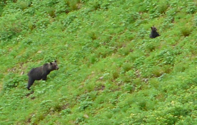 2009年夏にカムイエクウチカウシ山八ノ沢カールで出逢ったヒグマの親子 (←その時の記録にリンク)