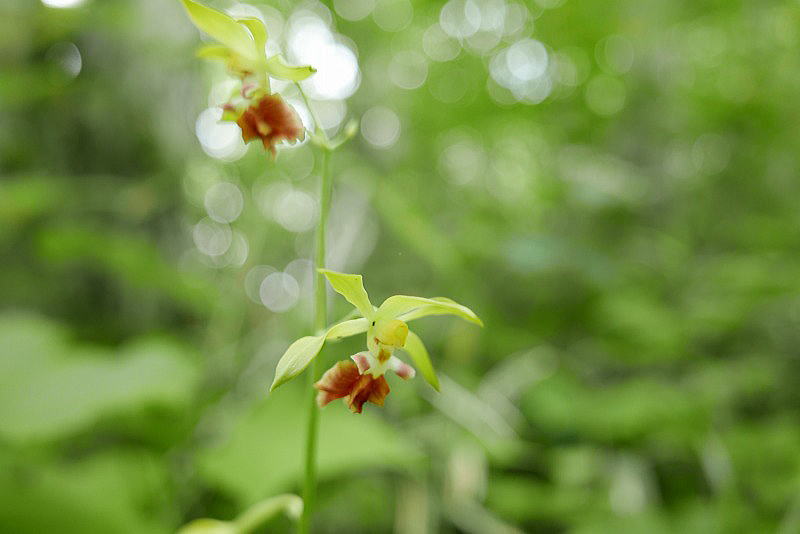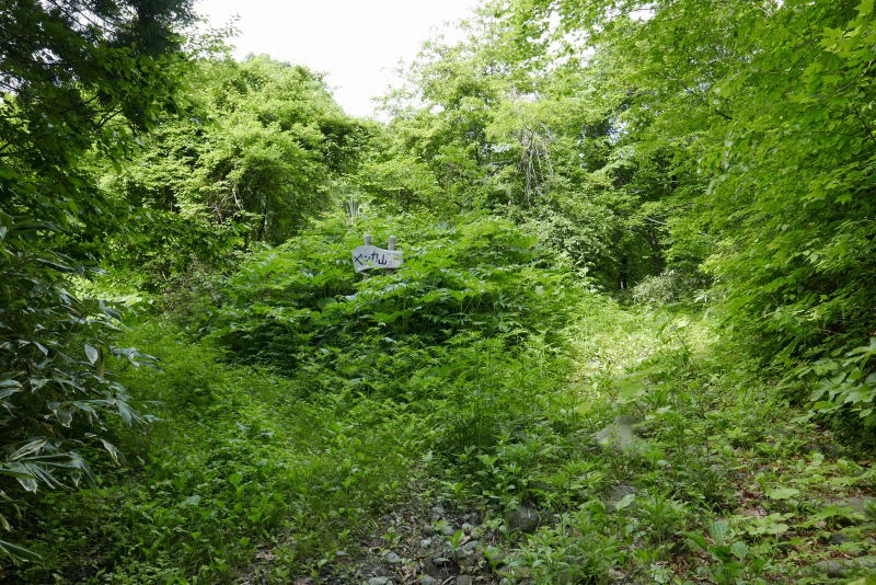 登山道脇にはイチヤクソウやササバギンラン、ホウチャクソウなどが咲いている。登山道の上にはヒグマの新しい落し物が多く、この付近を住処としているヒグマの存在が感じられる。今回はザックの下部に大きな熊鈴を付け、歩くたびに鈴が尻に当たって大きな音が出せるようにしたから、ヒグマがこちらの存在を先に分かってくれることを期待した。