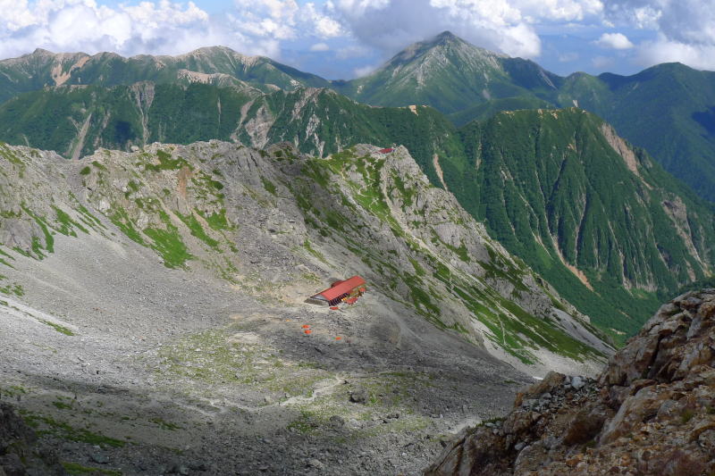 登山口の新穂高温泉から槍岳山荘までの標高差は2000mにも及ぶ。槍岳山荘でテント設営できない場合は、200m下って殺生ヒュッテでテントを張らなければならない。これも運命とどうにか納得し、多くの人が登ってくる槍沢を下る。途中、大きな荷物を背負った人には声を掛け、槍岳山荘の状況を教える。