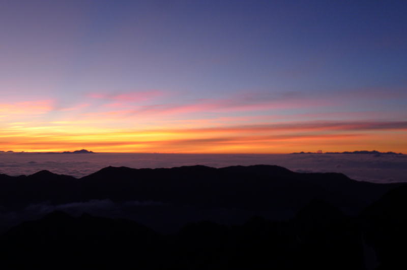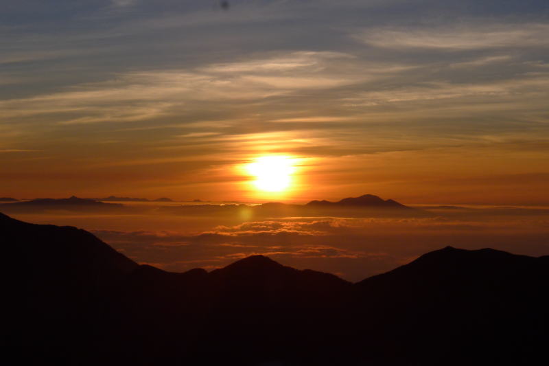 テントの撤収を始めながら御来光を待つ。荘厳な朝が始まる。頬に一筋流れる。思わず合掌。すでに奥穂高岳には多くの人が取付いている。