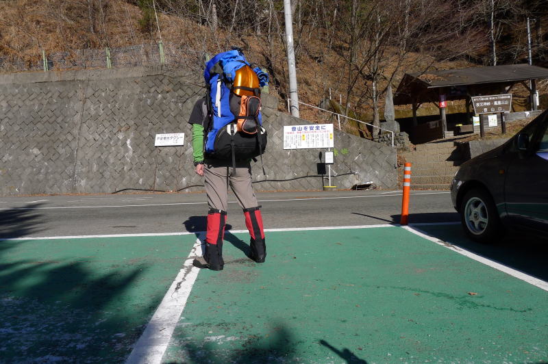 そうは言っても、実際は喘ぎながらの歩きです。特に登山口から夜叉神峠(小屋のあるところ)までは、寒いし背中のザックは重いし調子が上がりませんでした。その間を1時間20分もかかってしまったのですが、辛いのなんのって、こんなことは日高山脈以来の久しぶりのことです。それでも、杖立峠からは通常のピッチに戻り、山の地図の所要時間を短縮しながら登って行きます。しかし、下山翌日には激しい筋肉痛に見舞われました。やはりものには限度があるということです。