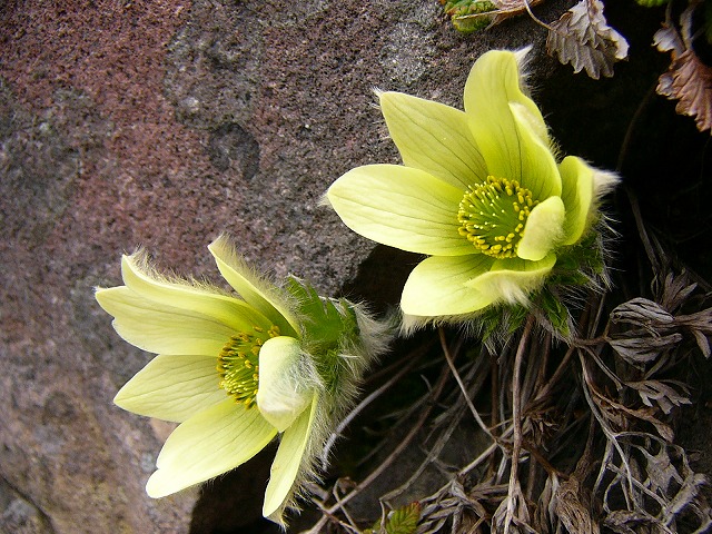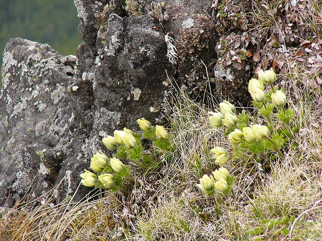 花の季節の八ヶ岳,その中でもツクモグサやウルップソウ,さらにはチョウノスケソウが咲くという横岳の稜線には,女性を中心とした登山者が多く,オヤマノエンドウなどの撮影に余念がない。三叉峰にはツクモグサは咲いておらず,地蔵尾根寄りに少し行ってみると稜線の西側斜面に待望の黄色い花が見える。