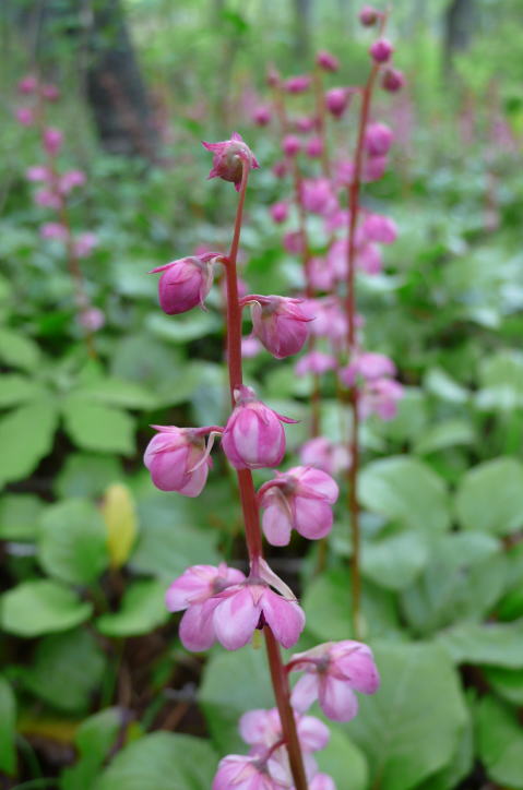 もう9時近くだ。レンゲツツジの花に彩られた林道を奥へ奥へと進み、ベニバナイチヤクソウの群落地を訪ねる。ちょうど満開の見ごろとなっている。次のテント山行は飯豊山を予定しているが、FURENを誘って見ごろを迎える白菜畑を訪ねてのテント泊もいいのかなとも思うが、悩ましい選択である。