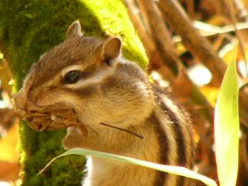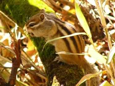 こちらが動かなければシマリス君も動かないといった状況だったので,そろりそろりと下山し始めると,シマリス君は木立の中に姿を消していった。平穏な秋の陽だまりの中の,なんとも形容詞しがたい時間であった。