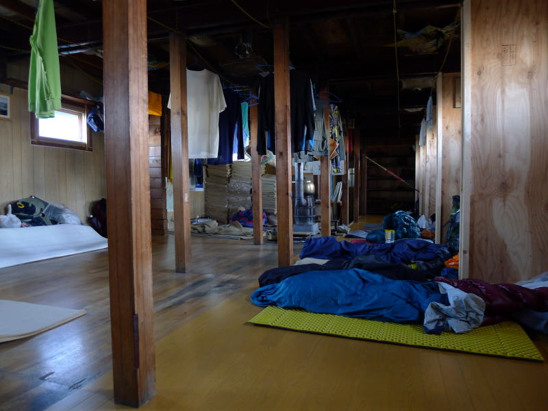 宿泊者は御来光を拝みに 羊蹄小屋1階内部