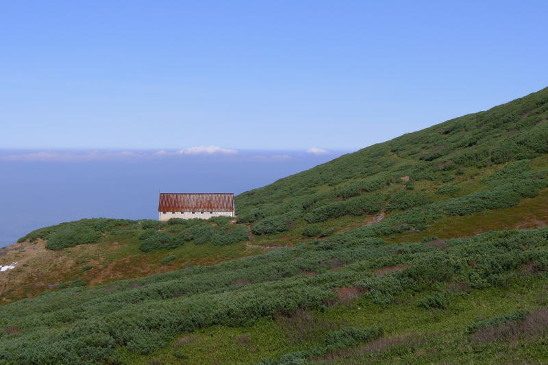 羊蹄山避難小屋では、管理人さんの一声で明けた。御来光を見に行く人は4時ごろに起きて(起こされて)身支度を整え、おおむねヒラフコース側から頂上に周っていくようだ。小屋に残ったのは管理人さんと2人の宿泊者だけ。そのうちの一人の自分は、食事をしてからゆっくりお鉢周りをする予定としている。みなさんは出て行ってから2時間もすると順次戻ってきた。