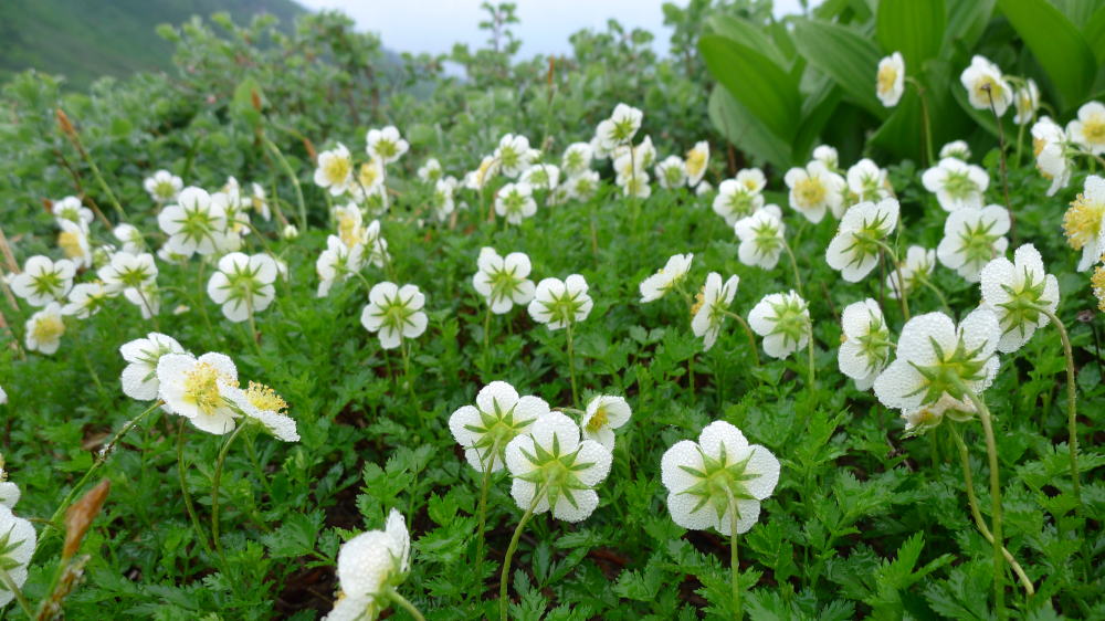 朝露を身に纏った朝日小屋のチングルマは、別の一面も見せていた。それはある場所のチングルマがどれも背を向けていたということだった。ガスがかかって日も差してはいないので、このグループだけが東の方向を見ることの理由が分からない。