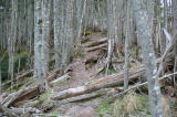 笊ヶ岳の記録を見ると、サイトによっては布引山から笊ヶ岳の間のところどころにテント適地があるとされているが、この間にテントを張ることができる場所は、笊ヶ岳の頂上の手前に無理して2張りだけだろう。そのほかは樹林に遮られた登山道であり、ツェルト以外を張ることは困難だ。