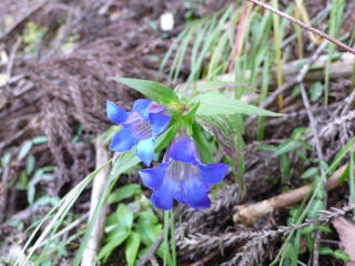 奥谷沢の道すがら ベンチ周辺のリンドウ