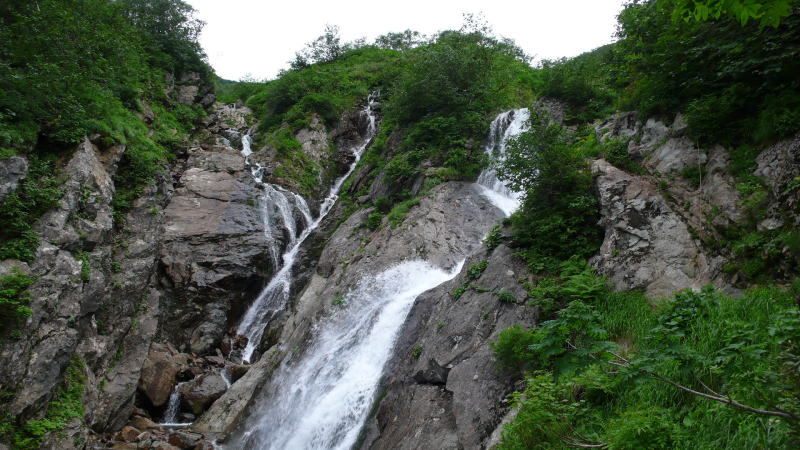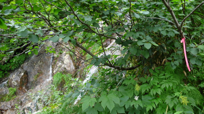 三股をやり過ごすと、もう緊張を強いられる場所も少ない。雪渓を過ぎると、右に左にと巻きながら歩く。今回の増水の跡は想像を超える広がりを見せている。水かさも相当程度のものであったろう。八ノ沢で渡渉できずにいたツアー登山者が救助を求めた状況は理解できる。