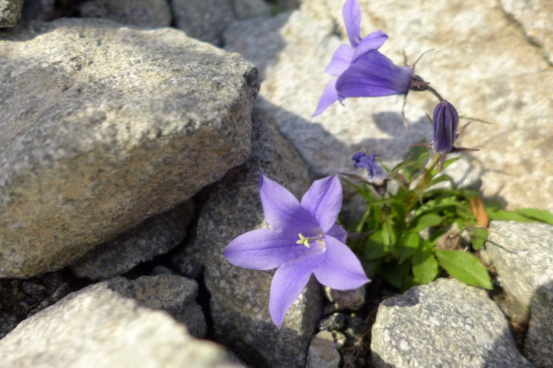 最低コルに着くと、咲き残りのイワギキョウやトウヤクリンドウが出迎えてくれる。これまで2度歩いたコースである。昨年歩いたのに、ところどころ景色に見覚えがない。それほど加齢の影響が出ているのか、それとも緊張していて覚えることがかなわなかったのか。当事者としては後者であることを願いたい。